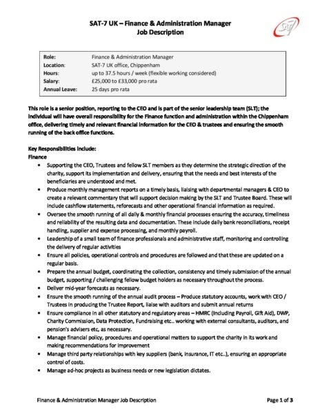 Duties Of Finance And Administration Manager : Finance And Administration Manager Job Description Pdf Financeviewer / Oversee operations of the finance department, set goals and objectives, and design a framework for these to be met.. Finance and administration manager and a wash officer to join its team. Administrative manager job description sample this administrative manager job description sample can help you draft a job posting that will attract the right candidate. Use the format and structure but change the paragraphs and bullet lists to suit your unique job requirements. Review, update and ensure compliance with financial systems, policies, procedures and emerging best practices that are in compliance with generally accepted accounting policies • support other team members with membership administration issues.